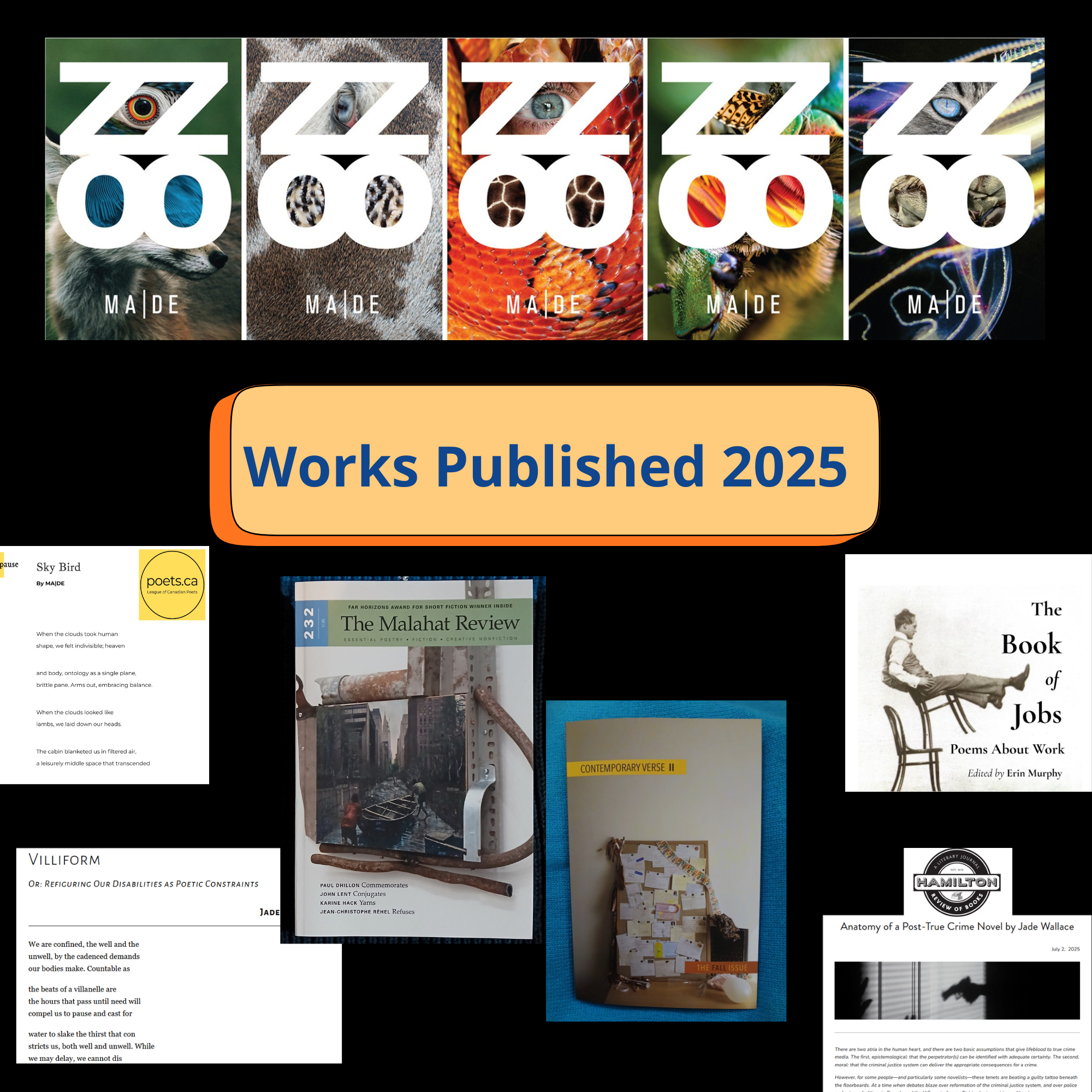 - “Sky Bird” in The League of Canadian Poets’ Poetry Pause, from MA|DE’s ZZOO